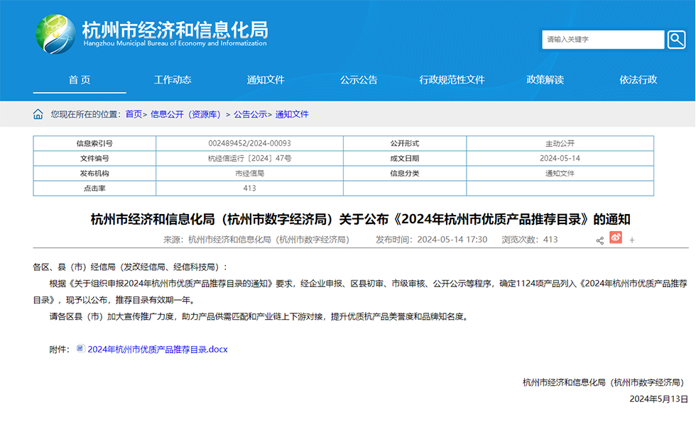据悉,杭州市优质产品推荐目录是杭州市经信局贯彻落实“新制造业计划”的一项重要举措,优质产品是政府组织认定的各项技术经济和质量指标达到先进水平的产品,旨在通过对杭州市优质产品的认定和展示,加大杭州市优质产品的推广力度。所入围的产品均通过各级相关政府部门的层层选拔,在科技创新、产品研发、智能制造以及品牌影响力等方面均取得显著成绩。